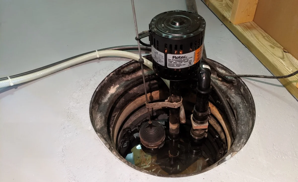 The sump pump’s float switch detects the presence of water in the home’s basement.